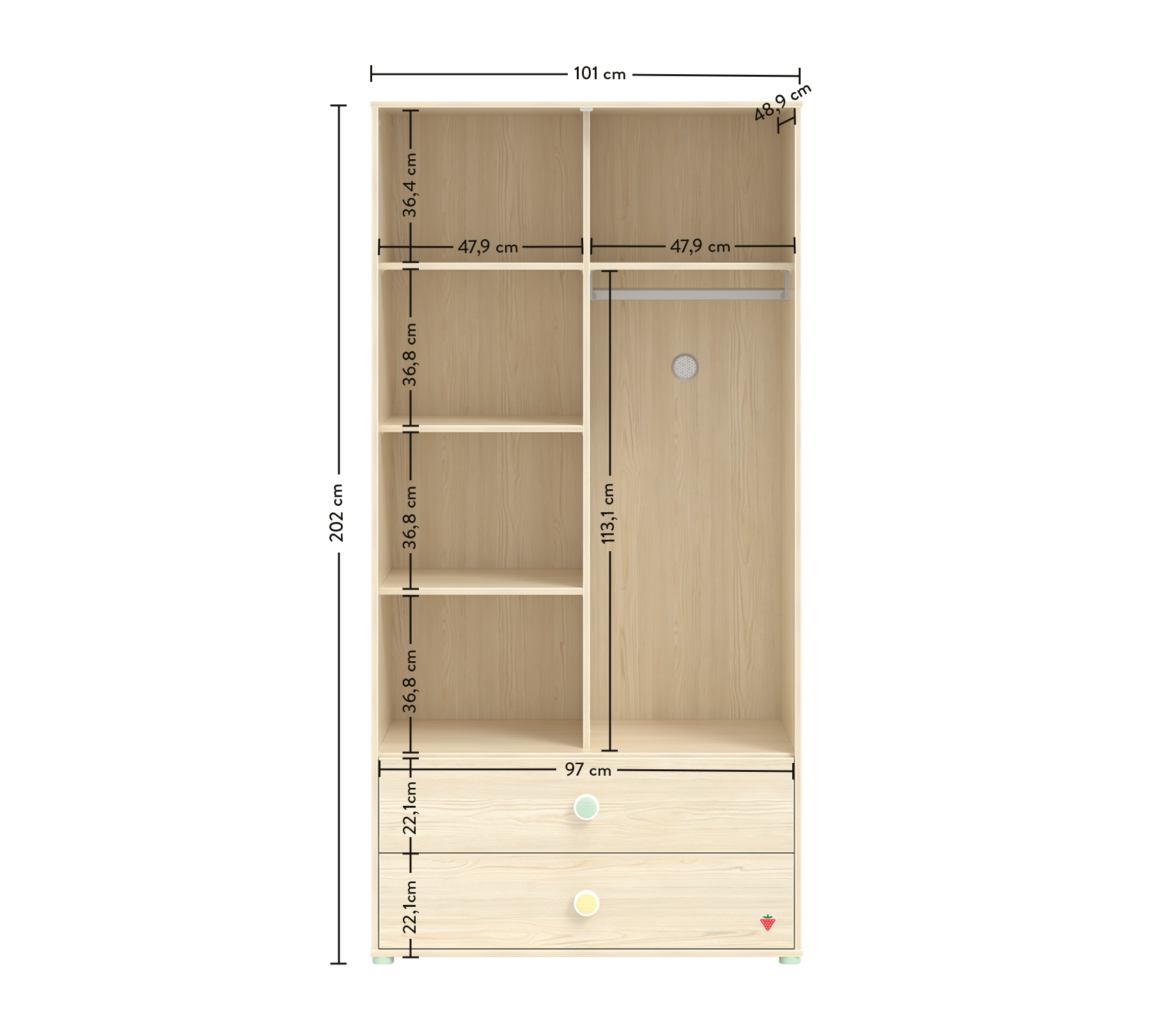 Gjerësia: 101 cm | Lartësia: 202 cm | Thellesi: 53 cm