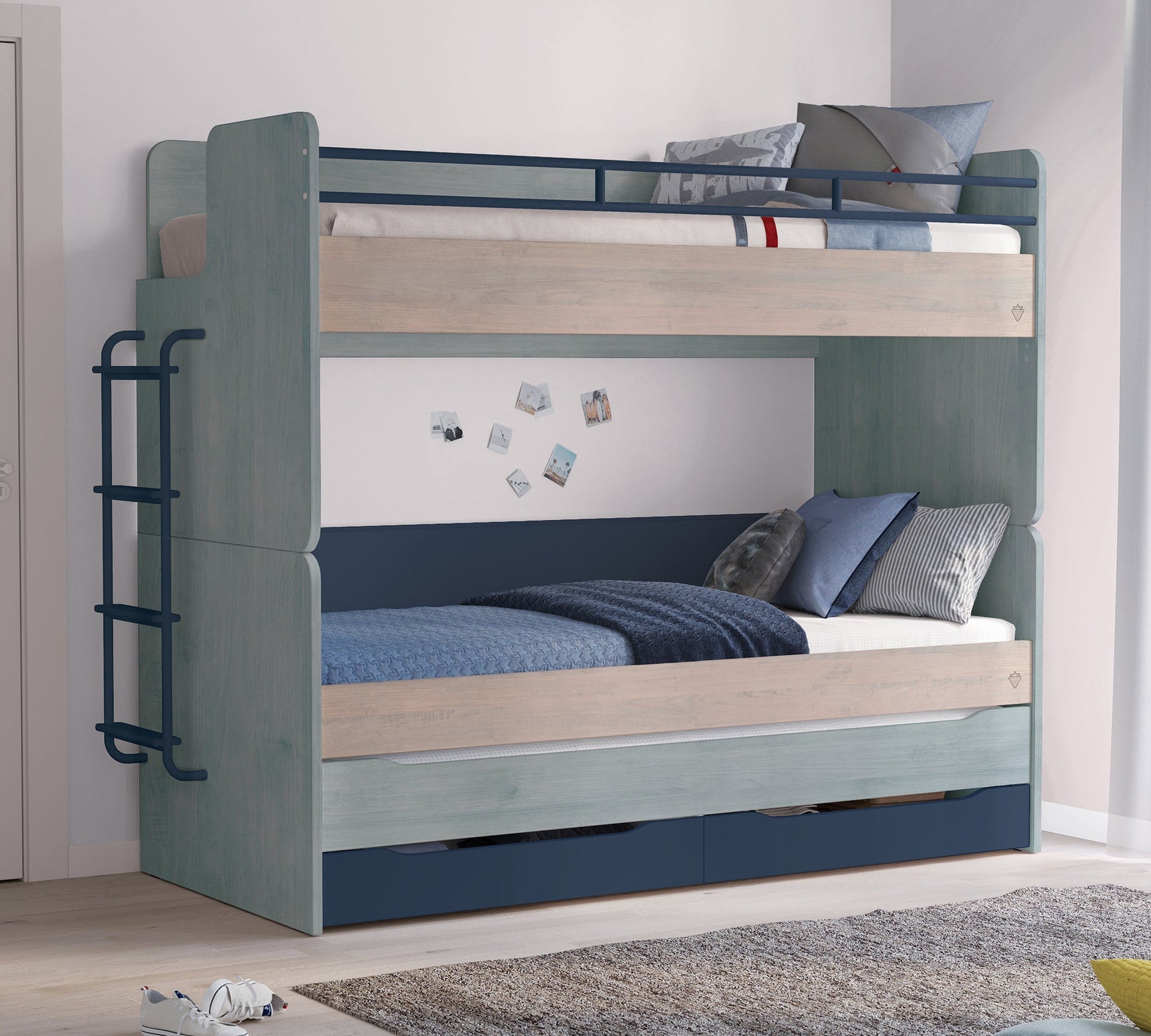 Me Trio Stüdyo Çekmeceli Alt Karyola, që mund të përdoret së bashku me modulet e krevatit dhe të krevatit të sipërm të koleksionit Stüdyo, ofron hapësirë shtesë depozitime falë sirtarëve të pavarur që ndodhen në pjesën e poshtme.